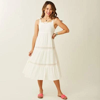 A dress designed to make even a trip to the grocery store feel like a frolic. With details like the square neckline, tiered skirt, and shoulder ties, the Kiera is a pretty and polished pick.