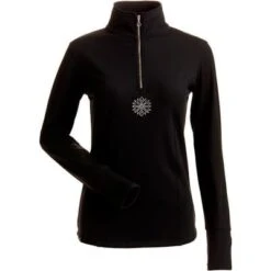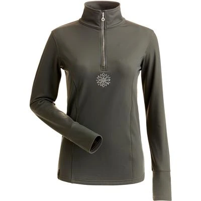 Heavyweight fleece backed 1/4 zip t-neck with embroidered and crystal snowflake detail and natural wicking properties.